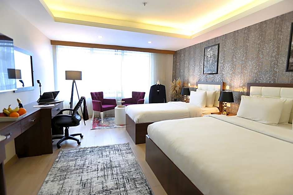 This room includes a flat-screen TV, air conditioning, electric kettle and a mini-bar.